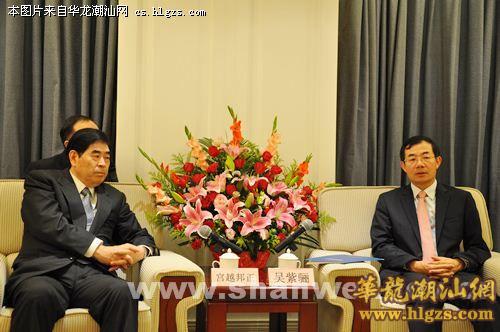 昨日(12月5日)下午,代市长吴紫骊在市区巴黎半岛酒店会见日本宫越集团董事长宫越邦正及深圳市潮汕商会负责人一行。宫越邦正一行到达汕尾后首先到深汕特别合作区考察节能环保企业投资环境。