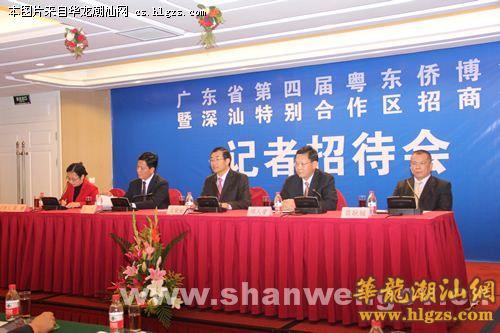 广东省第四届粤东侨博会暨深汕特别合作区招商会将于今天上午隆重开幕。昨天,本届侨博会记者招待会在我市举行,代市长吴紫骊和汕头、潮州、揭阳三市市政府有关负责人在会上向莅会记者通报各市经济社会发展情况,并回答记者提问。中央、省、粤东四市等地新闻单位参加招待会。