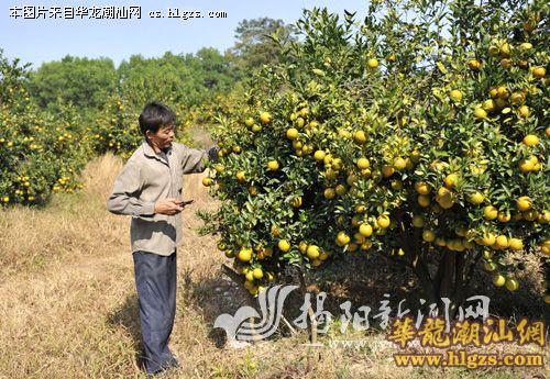 揭西县京明水果公司引进“台湾二号”蕉柑优质品种,经过四年的培育,所种植的200多亩蕉柑已有约2000多株结果。预计今年可收获7万多斤,初步取得了经济效益。图为技术人员在进行蕉柑后期管理。李维照 摄