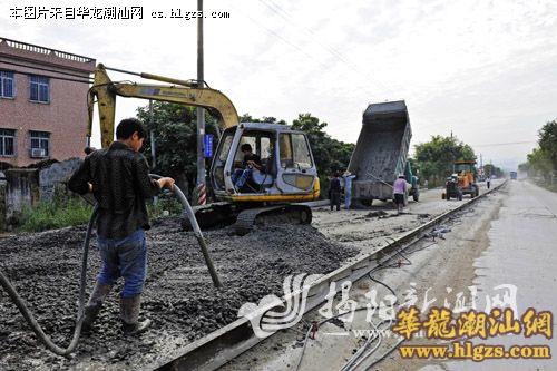 揭西县大力推进公路建设,省道S335线灰寨至河婆路段大修工程全长23公里,按二级公路设计。从今年3月动工以来已完成总工程量55%,预计春节前完成灰寨至龙潭的水泥路面建设。特约记者 李维照 摄