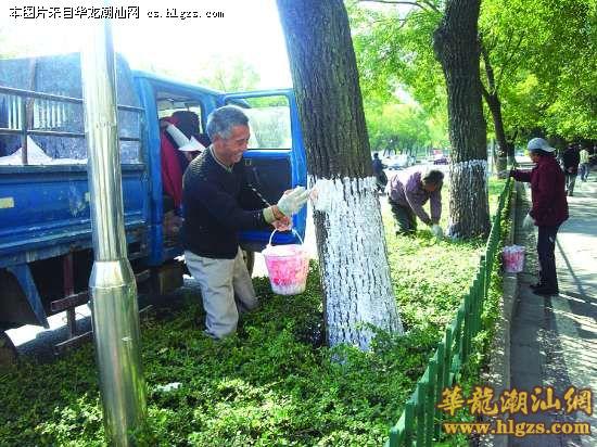 市城市绿化管理处负责人说,从大约一个星期前开始,管理处每天组织园林工人对辖区内的外马路、中山路、跃进路、金砂路等近20条主次干道1万多株树木进行刷白。