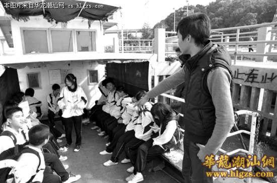 昨天下午2时左右,记者在妈屿渡口看到,从岛上家中走出来的学生们三五成群,相继来到码头搭渡过海。每当有学生上船,现场的渡工卢先生便及时提醒学生坐到船舱里。不一会儿,船舱里便坐满了过海上学的学生弟和学生妹。记者数了一下,这一航次乘船的学生有20多人。