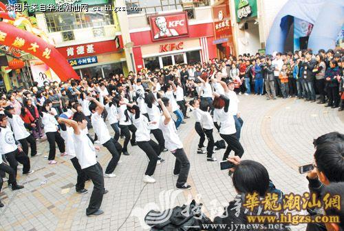 2012年1月1日下午两点多,在进贤商业步行街中心,几个80后以动感的舞步和飞扬的激情开场,紧接着,更多活力四射的不同年龄段的舞者加入其中,围观的人群也越来越多,尖叫声和掌声此起彼伏,一场街舞快闪,把围观的、路过的人群注意力尽收,将气氛推向高潮,却在有些路人还没反应过来之前消失在人群中,让市民回味。