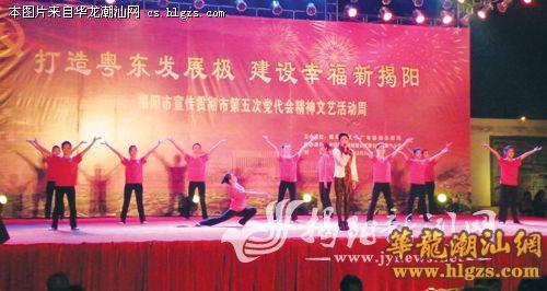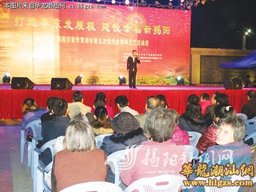 既有浓郁地方特色的潮剧潮乐,也有动感的歌舞、时尚的大片,2011年12月19日至26日晚,在揭阳楼文化广场举行的“宣传贯彻市第五次党代会精神文艺活动周”为市民带来丰盛的文化大餐。
