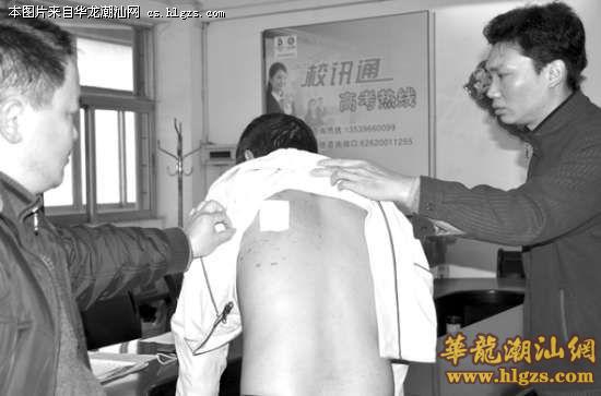 邱志勇说,李刚和李某在车外扭打起来,他和刘正平下车后看到李某拿着一个约有15厘米长、带点绿色的保温杯往李刚头上砸了两下。在扭打中,两人倾倒在地,李刚压在李某身上。我过去把李刚扶起时,发现其胸前和头部都是血。当时我只注意到李刚的右胸下有一道大约两三厘米深的伤口,扶李刚坐在边上后,我跑到前门叫当班司机赶紧报警。