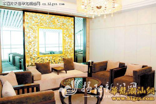 在揭阳潮汕机场,南航汕头航空有限公司投入近千万元打造700余平米两舱休息室,以“现代、简洁、舒适、明亮”为设计理念,现代风格加入潮汕元素局部予以点缀,按SKYTRAX五星标准进行装修,致力打造展示南航品牌形象及地方文化特色的两舱服务环境。