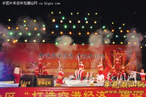 16日晚上,揭阳试验区凤美街道广南社区文化广场歌舞飞扬、热闹非凡,由试验区委宣传部、团试验区委主办,凤美街道、揭阳移动市区分公司协办的“打造空港经济,建设幸福新区”迎春文艺晚会正在这里举行。丰富多彩的节目吸引四乡八里的村民前来观看。