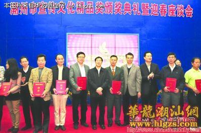 会议还表彰了2010-2011年度潮州市宣传文化精品奖获奖作品。据悉,一年来,在市委、市政府的正确领导和广大宣传文化工作者的共同努力下,我市在外宣新闻、文学艺术、社科理论、书籍出版和网络文化建设等方面取得累累硕果,共有126件作品分别获得特别奖、优秀组织奖、优秀作品奖、入选作品奖等不同类型的奖项,其中电视纪录片《饶宗颐》获得特别奖。