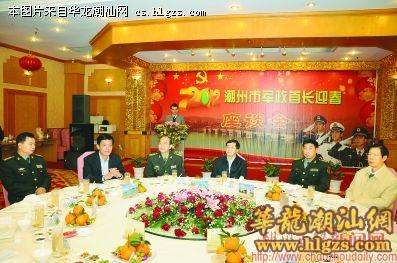 本报讯(记者 郑健 实习生 张敏)潮州市军政首长迎春座谈会昨晚在潮州迎宾馆举行。军地双方领导欢聚一堂,同迎新春,共叙情谊。