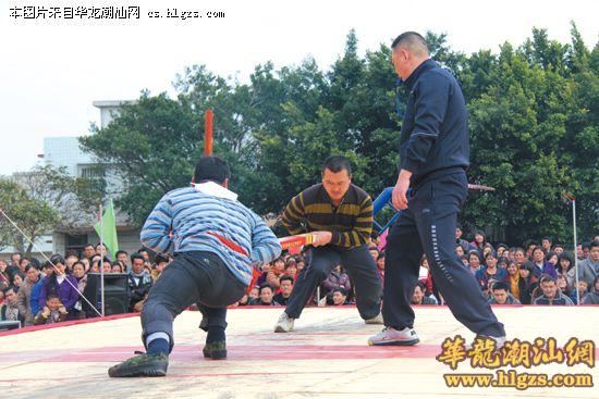 下午2时正,随着一通急促的锣鼓声响,据脐争霸赛首先进入人们的视野。由云澳镇老园村、中柱村、西畔村、澳前村等八个村(居)层层选拔出来的大力士代表亮相赛场,角逐据脐王。南澳县委副书记陈映山、县党政办主任黄伟文,云澳镇委书记王木春、镇长吴德昌与群众一同观看比赛。