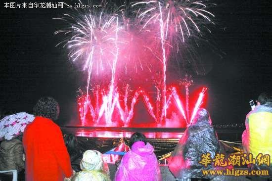晚上8时许,濠江区沿江路已站满前往观看焰火的市民。8时30分,一炮炮礼花凌空怒放,争奇斗艳,美丽的烟花在天空绽放,花海、火海、人海交相辉映,渲染出一幅欢天喜地庆佳节的图景,向人们传递着新春的祝福。人们纷纷掏出手机、相机、DV机,拍下这难忘的一刻。