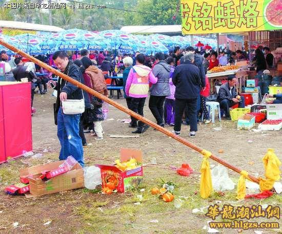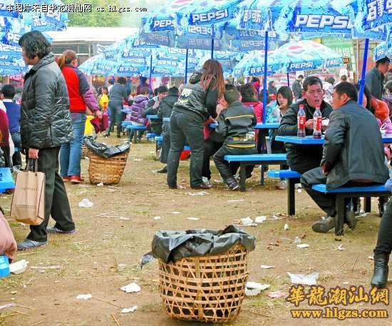 在华侨公园的潮汕美食展区内,这样不文明的镜头比比皆是:一群游客围坐在桌前,一边聊天一边嗑瓜子,随口将瓜子壳吐在了草地上;明明往前走几步就有一个垃圾桶,几个卖甘草水果的摊贩却贪图方便,直接把果皮倒在了草地上,一堆堆果皮散发着腐臭;不少游客一边吃着美食、喝着饮料一边走到海边看海,吃饱喝足后,随手将垃圾扔进海里。海面上,漂浮着大大小小的饮料瓶和一根根的竹签