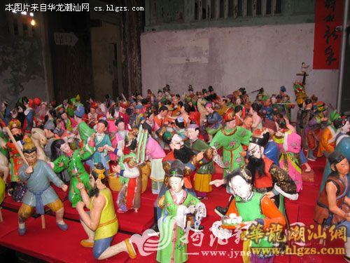 破门楼郑“安仔灯”盛会是榕城破门楼郑郑氏宗族的传统文化娱乐节目,至今已有300多年历史。看安仔灯抱“白弟”,有祈求新年财丁兴旺之意,在新时期更成为一项独具特色的民俗活动。“安仔灯”里摆设的“泥安仔”来自潮州浮洋,一团泥巴,经过民间艺人的揉搓、彩绘,再放到通花雕木橱里,便成了一个个栩栩如生、群众所熟悉的历史古装泥塑戏。“单刀赴会”、“姜太公遇文王”、“桃园三结义”……每一组泥塑都在讲述着一个个脍炙人口的民间故事。此外,还有“饮茶”、“番批”、“挨磨”等一些反映潮汕风土人情的“泥安仔”。放置“安仔”的通花雕木灯橱内分三层,最上层由“白弟”簇拥着“功名财子寿”屏,其余两层则罗列泥塑“安仔”,灯座缠绕霓虹灯,座前燃以蜡烛。生动活泼、惟妙惟肖的“安仔灯”人物令人百看不厌,流连忘返。