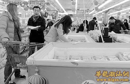 在汕樟路上的一大型超市冷冻食品区,记者看到置放汤圆的冷冻柜里存货已经所剩不多,特别是进行促销的某知名品牌汤圆只售4.9元卖得一包不剩,让周日下午才来购物的市民只能懊恼自己来得太迟。而记者了解到,元宵节吃汤圆的习俗并不是潮汕地区的传统,随着外来人口增多和习俗的融合,越来越多市民选择购买汤圆,以期盼一家团团圆圆。