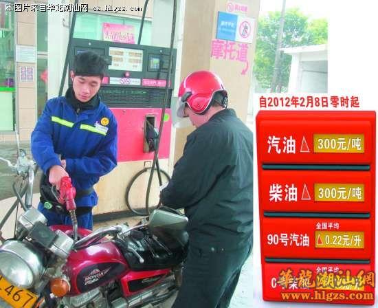 本报讯记者李伟烽摄影报道:国家发展改革委发出通知决定自2月8日零时起将汽、柴油价格每吨提高300元,测算到零售价格90号汽油和0号柴油(全国平均)每升分别提高0.22元和0.26元,重回历史高点。据悉,这是2012年我国成品油价格的首次上调。上次发改委调整油价是在去年的10月9日,汽油、柴油价格每吨均降低300元。