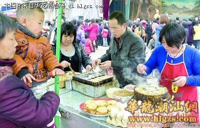 正月里,我市各乡镇的民俗活动丰富多彩,给一些小食商贩带来了商机。图为近日在潮安县江东镇独树村的戏台前,一小食摊前围满了前来品尝美食的村民。 本报记者 陈宏文 摄