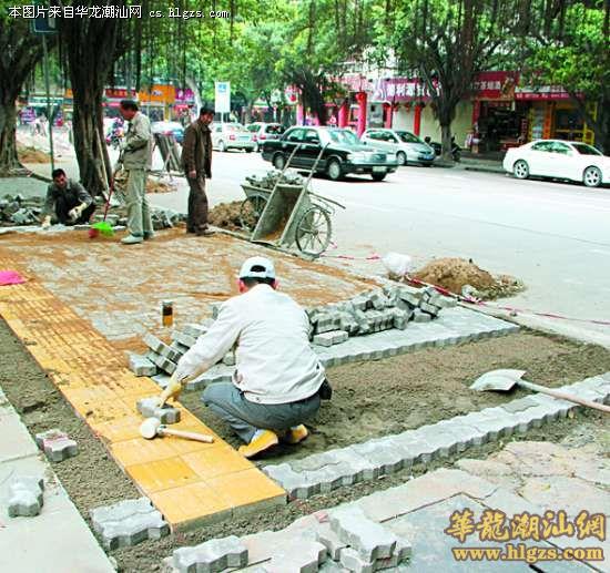本报讯记者黄鸿华摄影报道:为改善市民的出行环境,近段时间来,市市政设施管理处对市区多处破损步道进行修补、重铺人行步道路面砖。