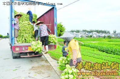 饶平县G洲镇大力发展芥菜种植,很多农户因种芥菜走上致富路,今年芥菜又获丰收,外地商贩纷纷到田头购买。据统计,目前全镇芥菜种植面积已达200多亩,每亩芥菜收获时可达3000多元。图为G洲镇农民将芥菜装车外运。