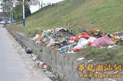2月7日,记者从市区出发,沿潮汕路,经潮安县东凤镇,至护堤路一路走访,沿途普遍存在生活垃圾堆放路边的情况。尤其是在护堤路一带各个村庄的入口,垃圾堆往往绵延十多米。除了塑料袋、废弃灯管等生活垃圾之外,破旧的红灯笼、鞭炮碎屑也比比皆是。部分垃圾堆还被点燃,导致附近一带烟尘弥漫。有的垃圾堆一旁就是鱼塘,近岸水面垃圾漂浮。在旅游景点龙湖古寨入口对面,五颜六色的果皮纸屑和塑料制品遍布堤坝。在横江村路段,一个垃圾堆竟堆上公路,过往行人车辆无奈绕行。