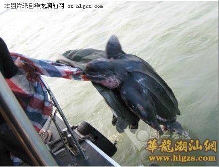 昨日,汕头市达濠区渔政局从渔民获悉一条震惊达濠的消息,一只体型庞大,性情极其凶猛的大水怪出现在人们眼前,这只大水怪需要十位壮汉才能挪动它。一时之间引起群众围观,部分渔民议论从未见此类海洋生物。后经验证,该生物原为国家二级保护动物,棱皮龟。