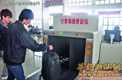 车站内配套了电子安检设备。图为进站乘客正在接受行李检查。