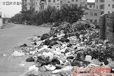 塑料饭盒、饮料瓶、剩饭残羹……由各种生活垃圾堆积而成的垃圾山,一直从路边延伸到路中间,这是昨天记者在南较西路与池湖路交界处所看到的景象。对于这个堆积了一米多高的垃圾山,许多过往市民反映,这个垃圾堆已存在很长时间,一直得不到清除,不仅影响了附近居民的日常生活,而且影响市容,希望有关部门能尽快对此进行清理。