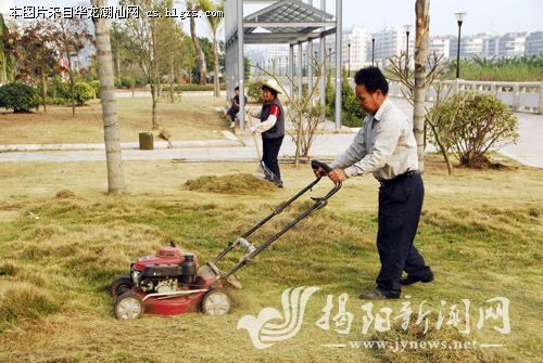 暮春三月,江南草长。沉睡了一冬的山水花草,随着春天的脚步缓缓醒来,桃花、桂花、山茶花等各种鲜花竞相开放,连草坪也要理个新“发型”。记者在市区临江北路看到,为了让绿草在春雨的滋润中更好地生长,园林工人抓紧时机为草坪“美容”,做好绿地养护工作。