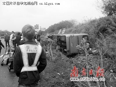 2月25日上午9时许,深汕高速公路海门出口处一辆大巴(粤G牌)发生翻车事故,大巴冲出护栏向右侧翻压住大巴两个紧急出口,车内载客40余人,有部分乘客受伤。汕头消防官兵破拆大巴前挡风玻璃,开辟紧急逃生口,救出全部乘客。