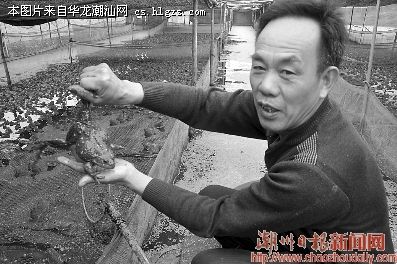 日前,潮安县磷溪镇牛蛙养殖户佘先生在蛙池查看牛蛙,准备近期出厢上市。佘先生高兴地告诉记者,今年当地牛蛙养殖普遍成活率高,生长情况良好,而且牛蛙收购价不错,目前每公斤在13元左右,是近3年来的新高。