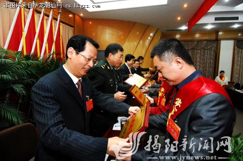 张仲会、陈绿平等为揭阳市党管武装工作和国防动员建设先进单位、先进个人代表颁奖。