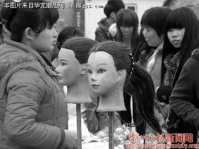 随着农村生活水平提高,人们追赶时尚潮流的风气也逐渐出现。图为湘桥区意溪镇西都村,村民在集市上选购发饰。