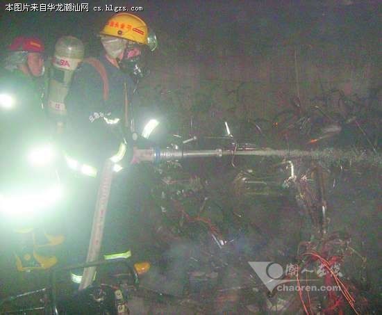 昨晚八点多,汕头市区华新城富华园一居民楼楼下的停车场发生火灾。金平消防二中队迅速出动2台消防车赶赴现场扑救,事故造成该停车场近十辆摩托车严重烧毁。目前起火确切原因正在进一步调查之中。