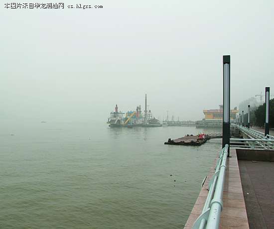 今晨受大雾影响,在海滨长廊已无法看清石大桥。 浓雾锁D城