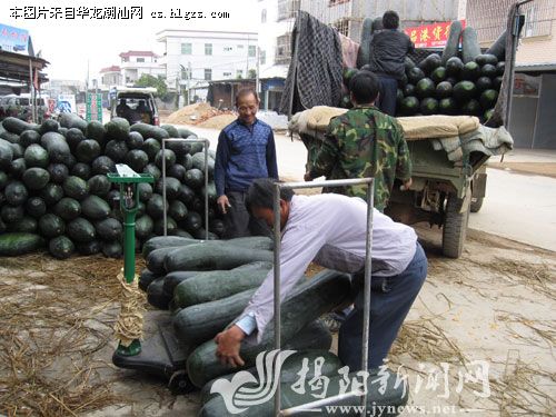 连日来,惠来县东港镇的百岭、渡头、长青、新村等乡村的黑皮冬瓜获得大丰收,平均亩产达到4000公斤以上,最近的收购价每公斤涨到2元以上。收购商纷纷将收购的冬瓜远销到浙江、上海、山东等华东地区大城市的瓜菜交易市场,产品供不应求,成为当地菜市场的“抢手货”。