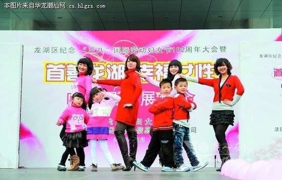 前天下午,龙湖区妇联在区政府前广场举行纪念“三八”国际劳动妇女节102周年大会暨“首善龙湖·幸福女性”——巾帼风采展示会。展示会分为“知性女性”、“活力女性”、“柔情女性”、“典雅女性”四个系列,为来自龙湖区各机关事业单位、企业、各街道(镇)、幼儿园的妇女搭建了一个展示风采的平台,通过服装展示、情景表演、文艺节目等形式,充分体现妇女在社会中的多重角色以及在幸福和谐家庭中的形象,引领现代女性新风尚。图为新津幼儿园带来的亲子家居装表演。