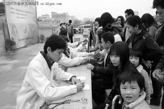 浮动社区医疗服务站医生为现场的学生家长义诊。