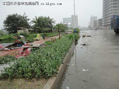 马路两旁的绿化带有多处被开垦成了私家菜园。