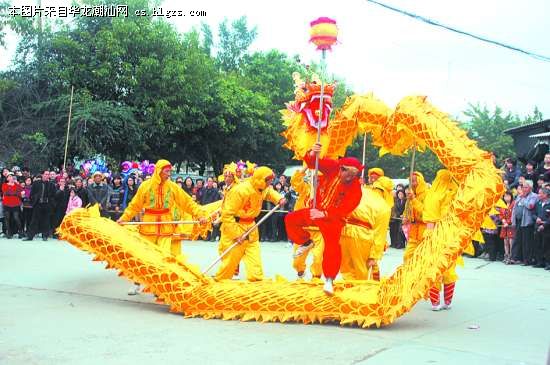 舞龙队在表演。