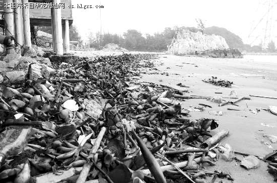 妈屿岛的海滩曾经是汕头市民游泳休闲的好去处。然而,近日记者来到这里却发现,海滩几乎成了“垃圾场”,除了大量的水浮莲外,还遍布着各种各样的生活垃圾。这些垃圾多数是随着海水涨潮被卷上来的,另一些是游客随手丢弃的。另外,沙滩上夹杂着大量黑色的沙土,令人望而生畏。据了解,这种情况在夏天同样存在,但很少有人对沙滩进行清理。