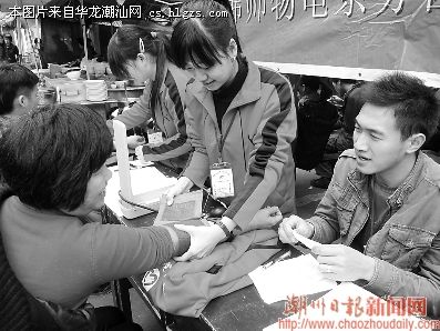 前天上午,40多名韩山师范学院物电系的志愿者走进开元广场,参与到由湘桥街道举办的“学雷锋,献技艺”的社区服务活动中,免费为社区内的居民提供家电维修和健康保健咨询服务。