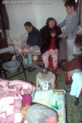 在简陋窄小的家里,两张床上分别躺着身患重病的郑先生和他的妻子曾女士。原来,曾女士三年前得了乳腺癌,动过手术之后,因无钱做后续治疗,从此下不了床,如今癌细胞进一步扩散,每天都要忍受着浑身疼痛的痛苦。而另一张床上,郑先生自从下岗之后就一直身体不好,患糖尿病近10年时间,导致半身瘫痪,无法行走。半个月前,郑先生再次发病,在医院住了半个多月,将从亲戚家借来的几千元花光之后,没有能力再住院只好回家。七十多岁的老母亲本来就患有脑血栓,看着躺在床上的儿子儿媳,心里焦虑,不小心跌倒,现在也行动不便。