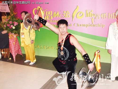 这次香港国际武术节共有来自50多个国家和地区的近万名武术爱好者参加,在这个国际武术盛会上,揭阳市15名选手展示了独特的武术风格和良好的竞技状态,夺得多项殊荣。武术界前辈杨祈国年过古稀,在赛场上风采不减当年,他打完整套南枝拳套路仍面不改色、气定神闲,博得雷鸣般的掌声,毫无悬念地夺得传统南拳第一名。少年运动员林博烽虽是小字辈,但他不畏强手,一把三叉舞得虎虎生风,矫健有力的动作一气呵成,勇夺少年长器械第一名。来自揭西县棉湖镇的南枝拳传人李益奎和陈楚雄,在赛场上展示了良好的精神风貌和精湛技艺,陈楚雄个人独得传统南拳、棍术两项第一名,李益奎斩获传统南拳金牌、棍术银牌。来自揭东县的太极拳好手李子江获陈式太极拳金牌、陈式太极剑银牌。邱禹昌、郑俊分获棍术、双器械银牌,林勇锐获单刀铜牌,陈师贤获棍术、拳术两枚铜牌。领队廖伟鸿被评为本次大赛的优秀领队。