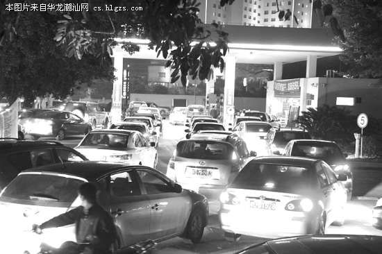 3月19日夜,众多车主赶在油价上涨前加油,市区多家加油站排起长龙。
