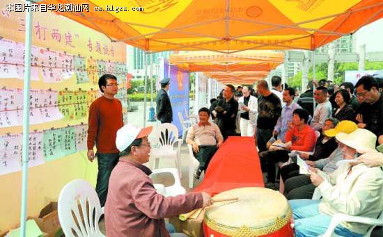 ▲“三打两建”的专题谜台前乐融融。200首围绕汕头市“三打”专项工作内容制作的谜语,吸引众多群众参与竞猜。