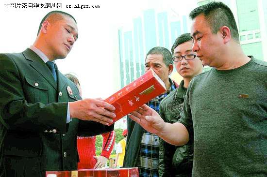 ▲市烟草专卖局有关真假烟鉴别的讲解让市民十分感兴趣。
