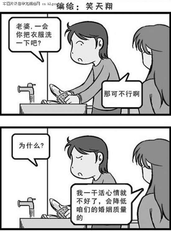 小林和小张婚后没有与父母一起住,虽然很自由,但每天的家务活却让他们感觉很累。为了减轻彼此负担,他们约好妻子小林每天负责做饭和洗衣服,丈夫小张每天负责洗碗和拖地。一开始彼此还能坚持,但时间久了,小张开始不干活,小林很生气,指责小张“偷懒”,还到父母家“告状”。而小张也指责小林,一不想做饭就说要下馆子,每个月的钱都花在外面吃饭了,夫妻俩成了“月光族”,以后生了小孩可怎么办?