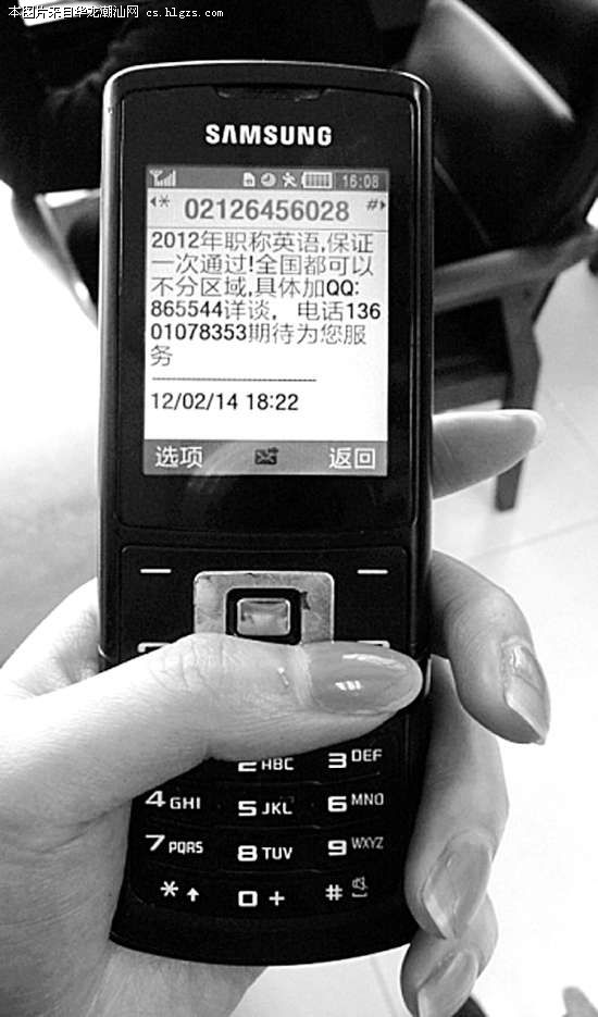 “2012年职称英语考试将至,我机构可提前办理广东省内替考及答案服务,签约保过,让你一次通过考试不留遗憾。”“2012年职称英语零基础,100%保过率”,英语职称报名后,不少考生都接到类似的信息,有公然兜售答案的,有卖培训的,甚至有找替考的,“热情”提供各种考试对策应有尽有。在某学校任职的余老师告诉记者,刚刚才在网上注册报名,回头就有短信邮件频频骚扰,有时候甚至是三更半夜,严重影响到作息时间。