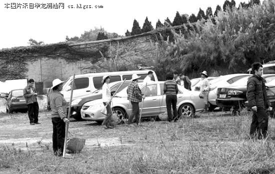 在中华永久墓园旁的停车场,汽车收10元,是规定标准的2.5倍。