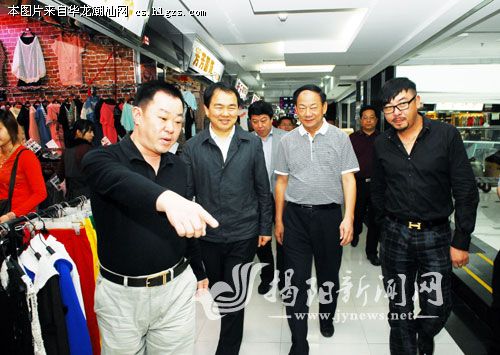 李兴华一行在陈东等的陪同下前往普宁国际服装城调研。