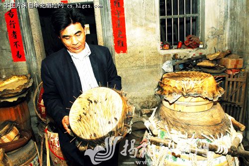 据了解,牛皮经处理后制成的鼓壳还需在通风阴凉处停放四个月,最后经过定形、油漆等工序,整个制作流程才完成,这样的鼓敲起来声音浑厚、纯正,堪称一件艺术品。